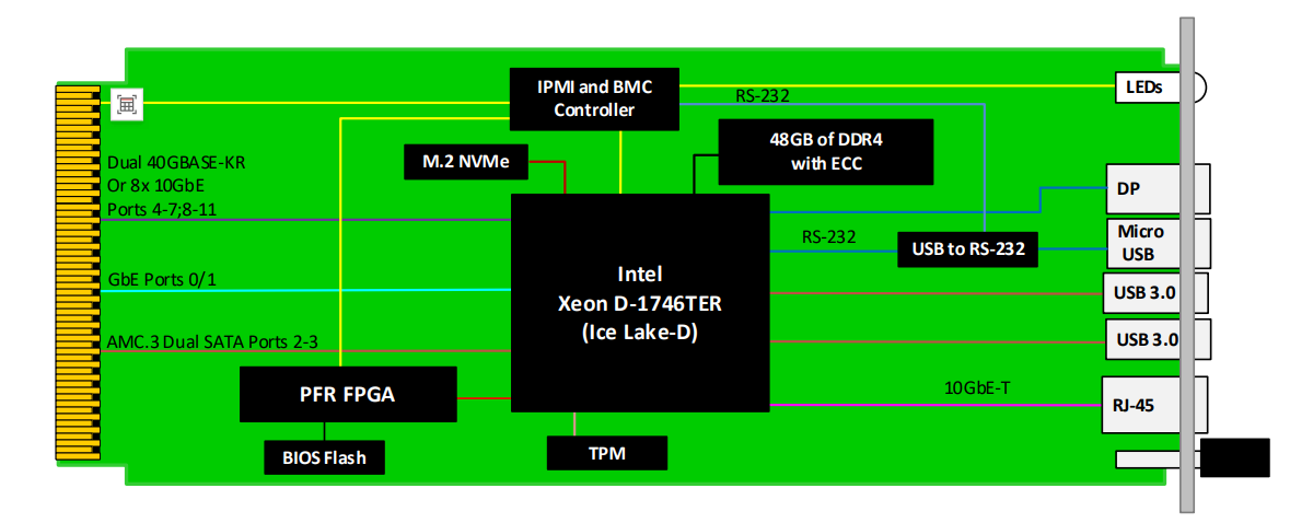 Mezzanine Card (AMC) form factor based on the Intel® Processor Xeon® D-1746TER (Ice Lake-D)